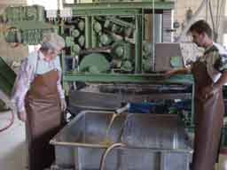 Becken wird der Saft aufgefangen. Die Obsrresten werden als Trester